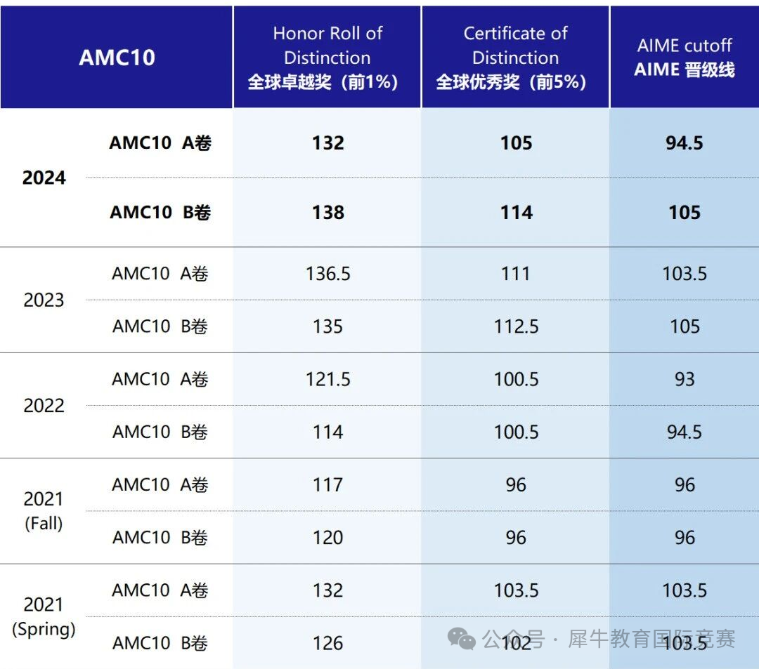AMC10竞赛历年分数线