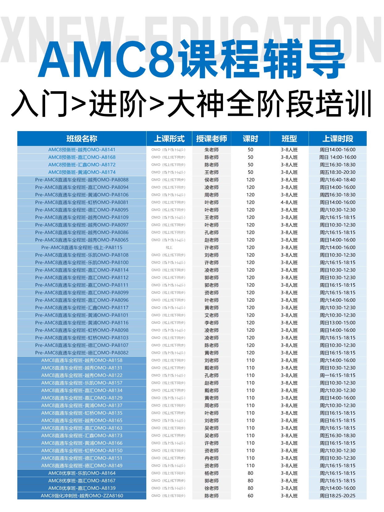 犀牛上海AMC8线下课程分层教学,精准匹配学生需求,设置四大核心班型,确保每个学生都能找到适合自己的学习节奏: