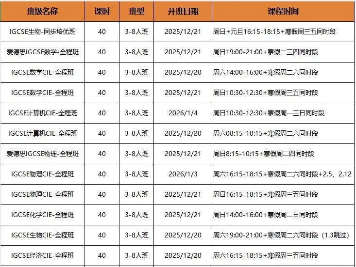 犀牛IGCSE辅导课程,针对热门6大科目,开设先修班、培优班、大考冲刺班、以及全程班等多个班型,线上线下双轨教学方式,适合不同学习需求的学生。