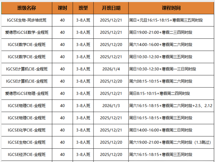 犀牛IGCSE辅导课程,针对IG阶段6大热门科目开设了先修班、培优班、冲刺班、全程班等多个班型,汇集全球TOP院校的硕博导师,助力学员轻松上分冲A*。