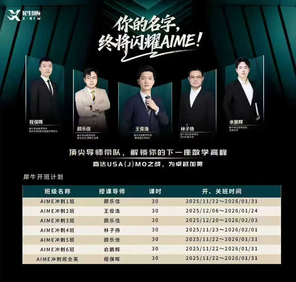 AIME培训冲刺班30小时,线上线下同步开班,AIME培训3-6人小班课和一对一都有!数学竞赛大牛导师授课,提升快,更适合冲奖!