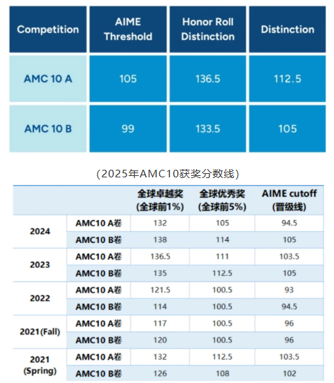 2024年AMC10晋级线直接冲到103.5分,前5%121.5分,前1%136.5分。