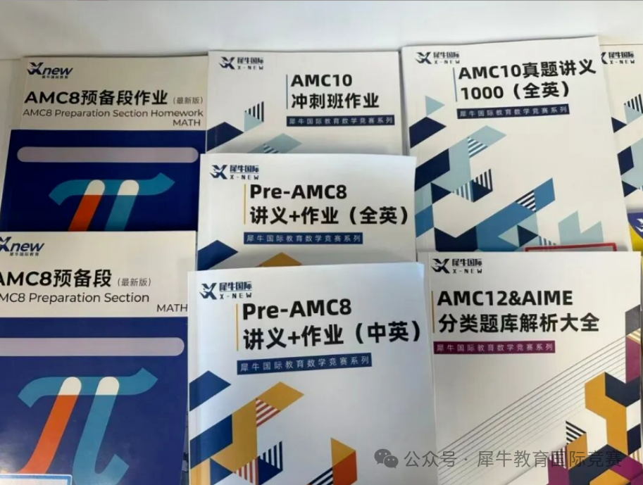 犀牛有专业的AMC竞赛教研体系,使用AMC10/12竞赛自研教材,配合历年真题,形成闭环教学。