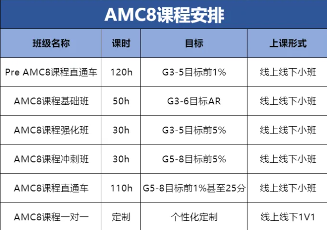 ✅AMC8竞赛课程类型:3-6人小班/一对一授课
