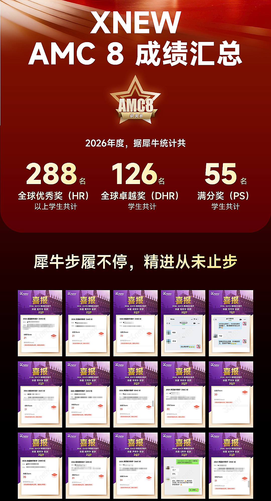 简单说,AMC8 和奥数方向不同,知识点和难度,以及作用也不一样。犀牛做 AMC 竞赛培训多年,课程成熟、出分稳定,是一个靠谱的选择!