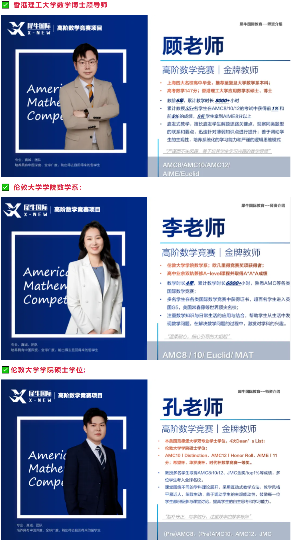犀牛AMC8拿奖培训周末班师资