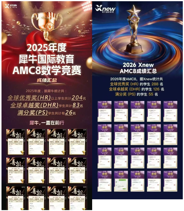 AMC8竞赛备考已进入白热化阶段!犀牛AMC8拿奖培训周末班上线——专为冲刺全球前1%设计,每周仅需2小时,周末假期灵活上课~帮助学生在学业与竞赛间找到最佳平衡点。