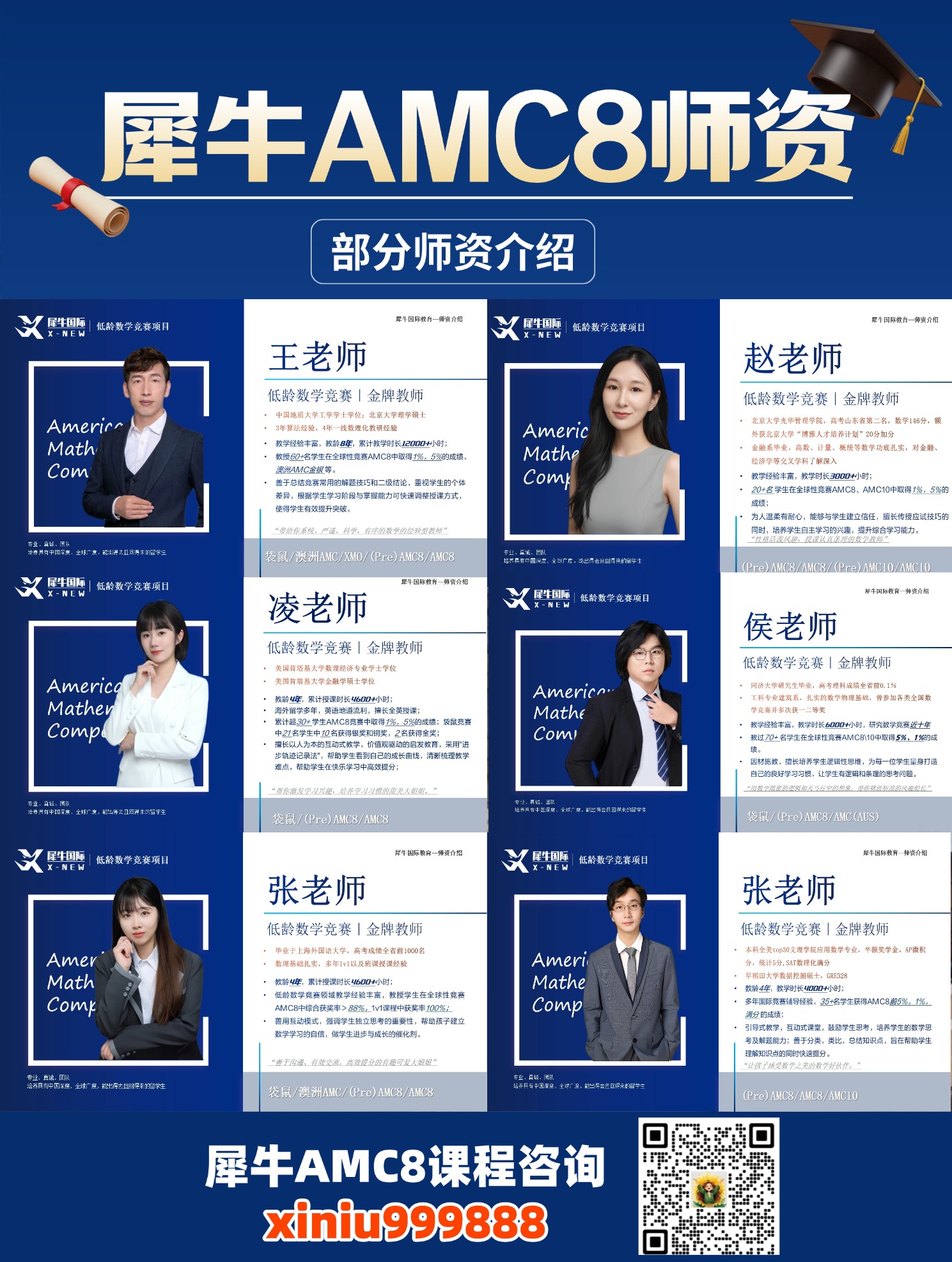 总的来说,想让孩子学好 AMC8,老师真的很关键。犀牛 AMC8 的老师不管是专业度、教学经验还是负责程度,都能给孩子稳稳的支持。