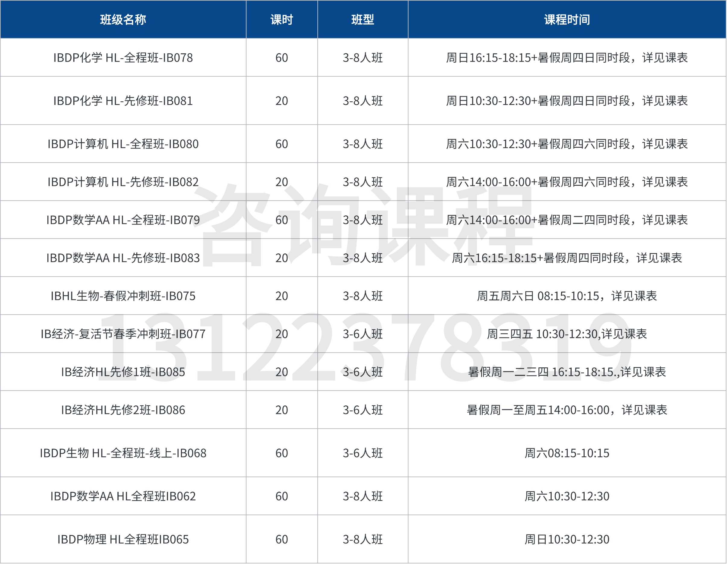 IB课程培优班(40小时):紧跟校内进度,知识点逐个讲解,配合真题训练。重点解决上课能听懂,做题就出错的问题