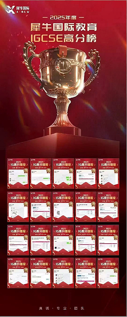 犀牛国际教育的IG授课团队深耕于国际课程多年,熟悉 IGCSE 考纲与评分标准,教学更贴合冲 A * 需求。