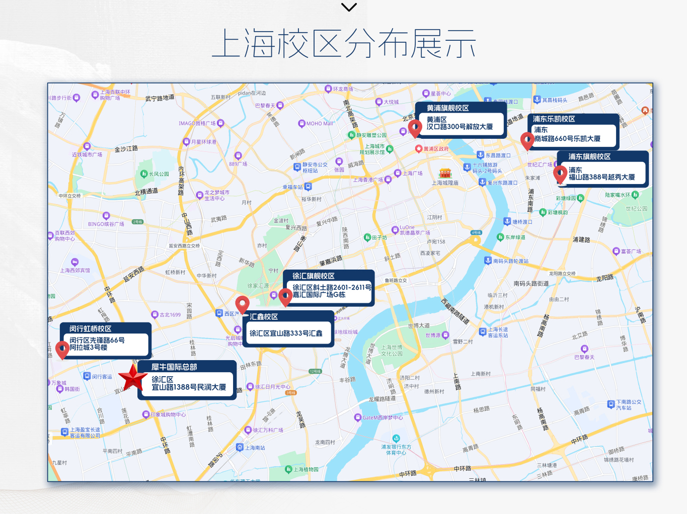 上海地区设有徐汇、浦东、黄浦、虹桥共 8 大线下校区,可根据孩子住址就近安排上课,通勤更方便