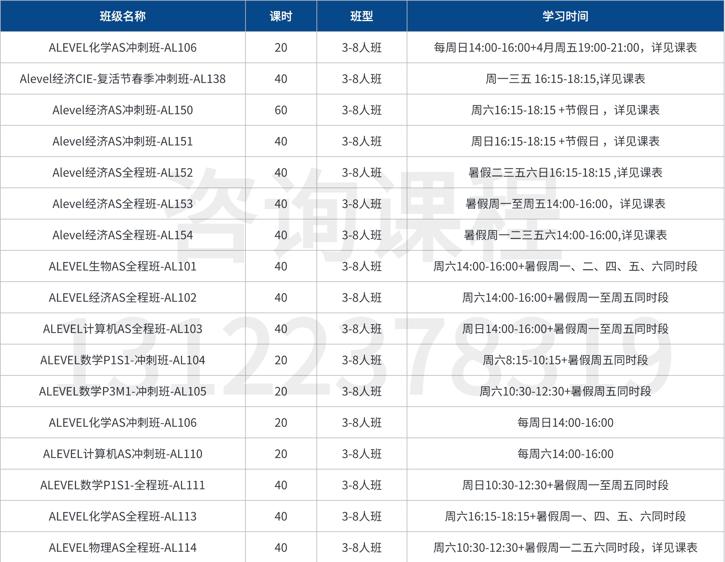 A-Level课程辅导推荐,预习/全程班涉及数学/物理/生物/经济科目等...