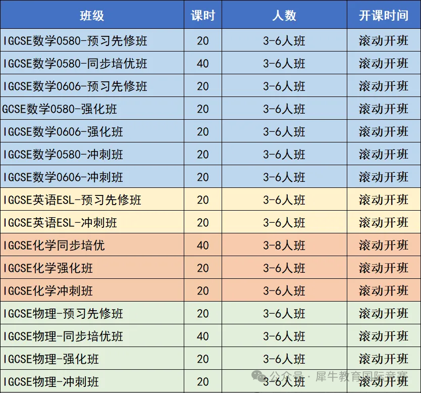 摘要:犀牛IGCSE培训小班课组班啦!这个暑假和犀牛一起备考IG, 先修班、强化班、冲刺班、全程班 等多种班型,根据学生基础匹配适合的班级。全国30+直营校区,可提供线上/线下IGCSE培训小