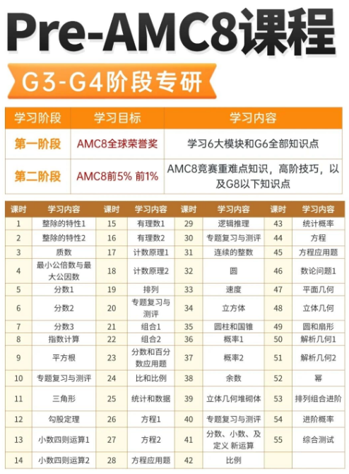 若未接触过数论、组合等竞赛模块,可通过Pre-AMC8课程提前铺垫。