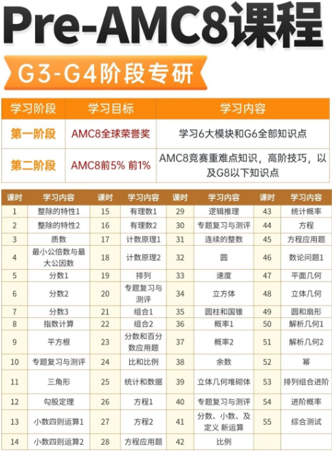若未接触过数论、组合等竞赛模块,可通过Pre-AMC8课程提前铺垫。