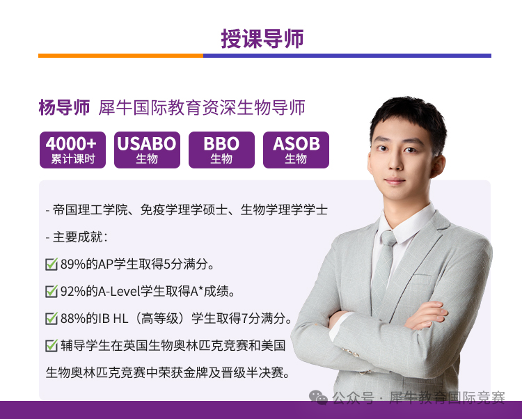 犀牛国际生物竞赛夏令营由杨老师领衔授课!