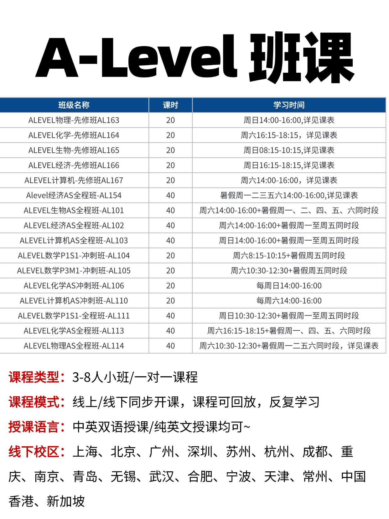 适合零基础、需系统备考的学生,全阶段覆盖Alevel课程,紧跟校内教学进度,巩固Alevel课程知识点,确保课堂内容及时消化