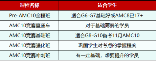 AMC10竞赛(110H):与AMC10培训全程班学习内容和节奏基本一致。