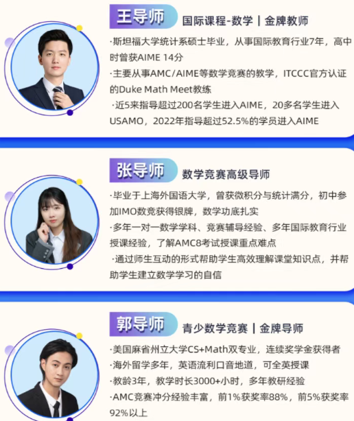 摘要:上海犀牛教育针对AMC10备考不同阶段都开设对应的培训课程,从基础夯实到冲刺备考都有对应的课程,多种班型根据前测基础,帮助学生更好的匹配适合的课程。