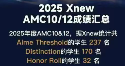 在2025年AMC10、AMC12数学竞赛中,犀牛学子共有237人拿到Aime Threshold,170人拿到Distinction,32人拿到HR。