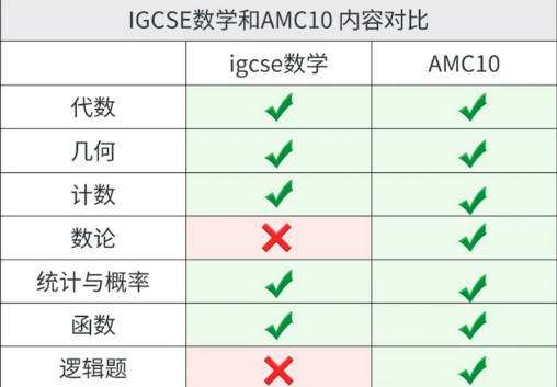 具体来看,IGCSE数学(特别是0580和0606课程)涵盖数与代数、空间与几何、函数、统计与概率等核心内容,这些都是AMC10考试中基础几何、初等代数、概率等问题的基础。