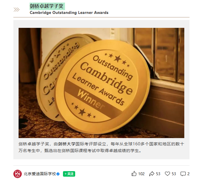 抄作业!北京爱迪3名学生拿下「剑桥奖」这3位学霸履历就是你的Alevel申请模板!犀牛国际教育-北京犀牛国际教育