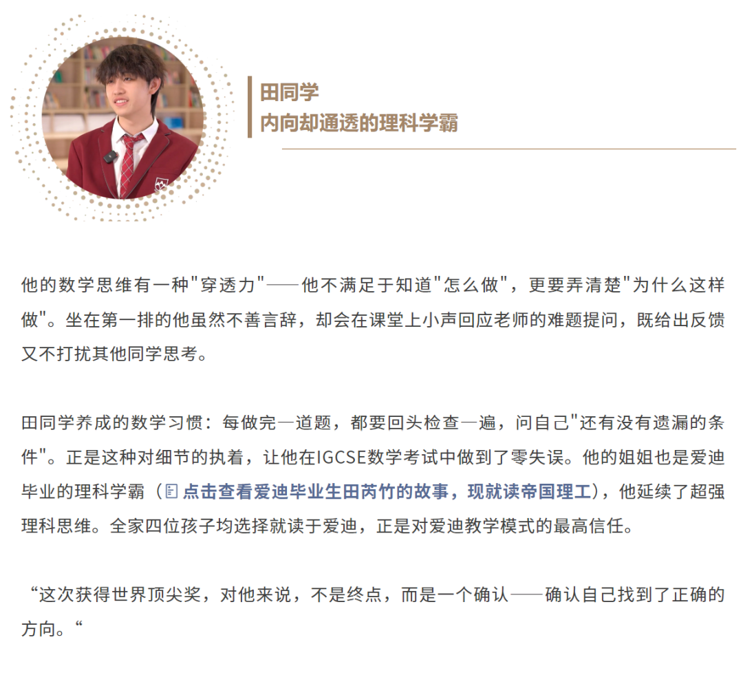 2025年剑桥卓越学子奖揭晓,北京爱迪国际学校高中部田同学、张同学、巩同学以IGCSE数学满分的成绩,荣获IGCSE数学世界顶尖奖项!纵观三位学霸的IGCSE-Alevel学习历程,照搬冲名校!